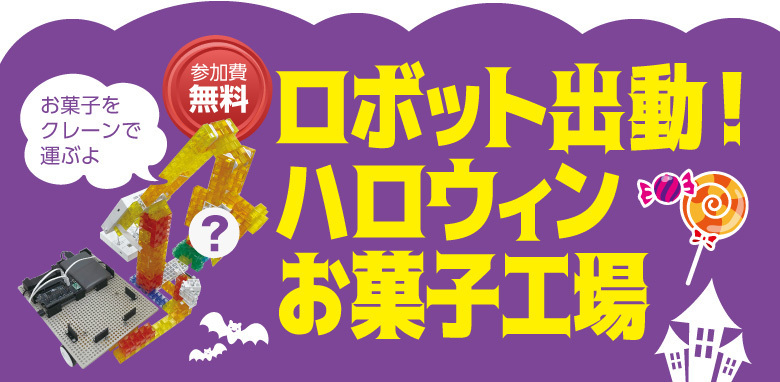ロボットアームからおかしを受け取り、コースを外れずにゴールまで運ぼう!モーターの向き・はやさ・時間を変える試行錯誤を重ね、身近な電子機器にも使われるマイコンに触れられます。
